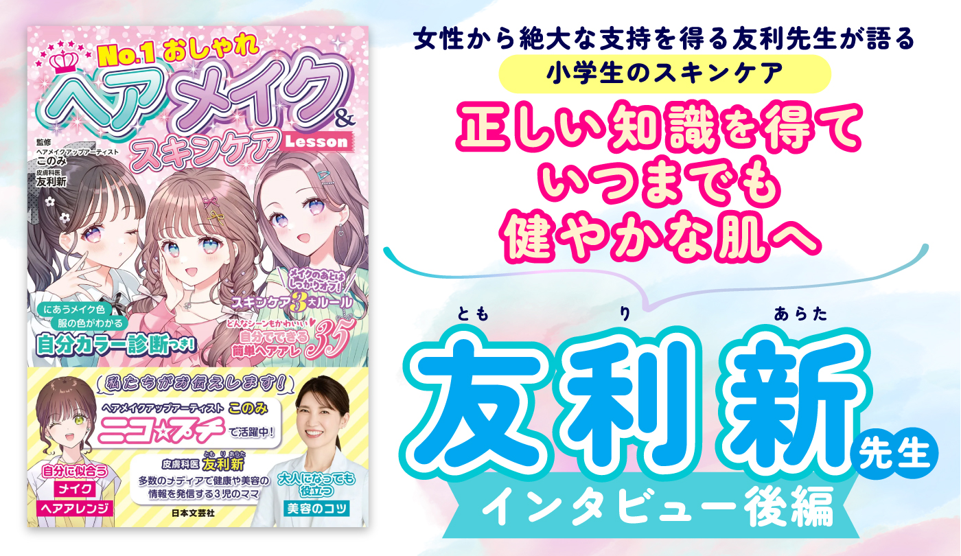 ――友利先生監修の書籍『No.1おしゃれ ヘアメイク&スキンケアLesson』(日本文芸社)が2025年9月に発売されましたが、この本のターゲットは小学生。大人の女性へ向けた活動が多い友利先生が、このような本に携わった理由を教えてください。