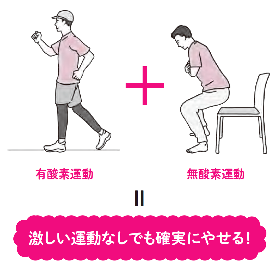 だからといって、有酸素運動だけを行えばいいのかというとそうではありません。やせるには、両方の運動が必要。有酸素運動は脂肪を燃焼させますが、無酸素運動は筋肉量を増やし、基礎代謝を上げて太りにくくする効果があるからです。つまり、2つの運動を組み合わせることがやせ体質への近道なのです。