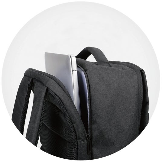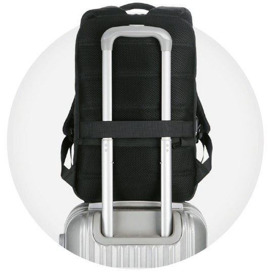 便利なワイドラゲージストラップは、リュックをスーツケースのハンドルに簡単に引っ掛けられます。
