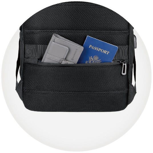 隠しポケットに貴重品を入れておけるのでスリの心配もなし。