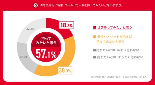 そして、ゴールドカード未保有者に「ゴールドカードを持ってみたいか」を聞いたところ、約6割(57.1%)のユーザーがゴールドカードを持ってみたいという意向があることが分かりました。