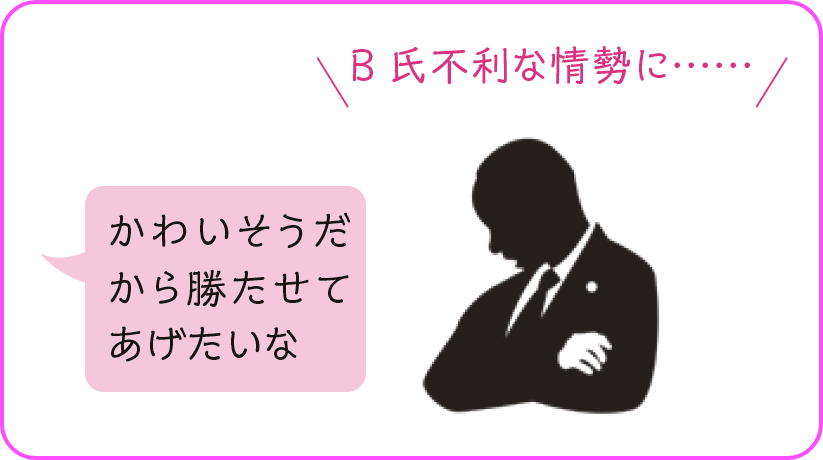 上と反対の心理を表すのがアンダードッグ効果。弱者や人気のない人ほど同情票が集まってくるという心理で、日本語の「判官びいき」に当たる。