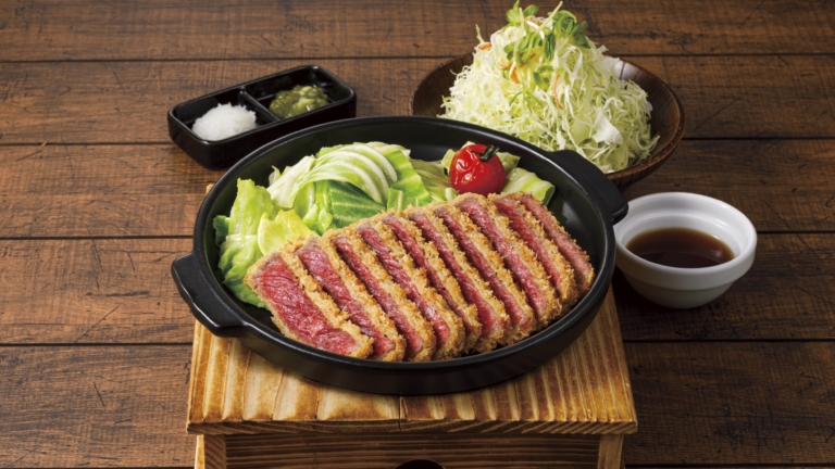 株式会社アールディーシー牛かつはレアの状態で提供!お好みで火を通してヒマラヤ岩塩、自家製オニオンソースとおろし、刻み生わさびでお召し上がりください。 株式会社アールディーシー(代表取締役社長:大島敏彦 本社:埼玉県熊谷市)グループのとんかつ業態、「かつ敏」を運営する株式会社ケイディーアール(取締役社長:清水晴之)では、2026年2月4日(水)に期間限定で「黒毛和牛かつ」を販売いたします。