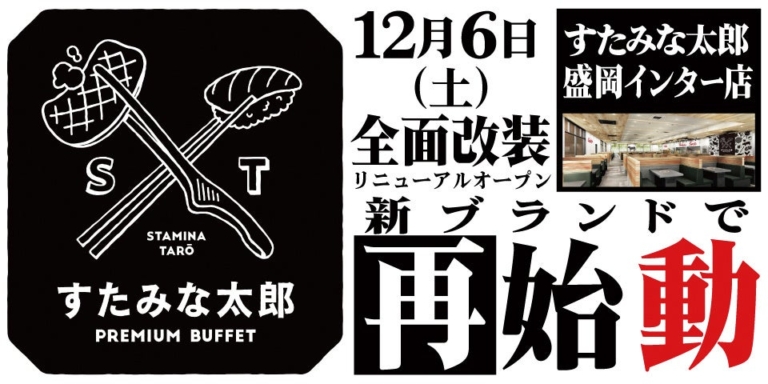 すたみな太郎HP:https://staminataro.jp/ 焼肉・寿司・スイーツ食べ放題レストランチェーンの「すたみな太郎」などを運営する株式会社江戸一(本社:東京都足立区、代表取締役社長:珊瑚 卓哉)は、岩手県滝沢市の「すたみな太郎 盛岡インター店」を全面改装のうえ、2025年12月6日(土)に「すたみな太郎…