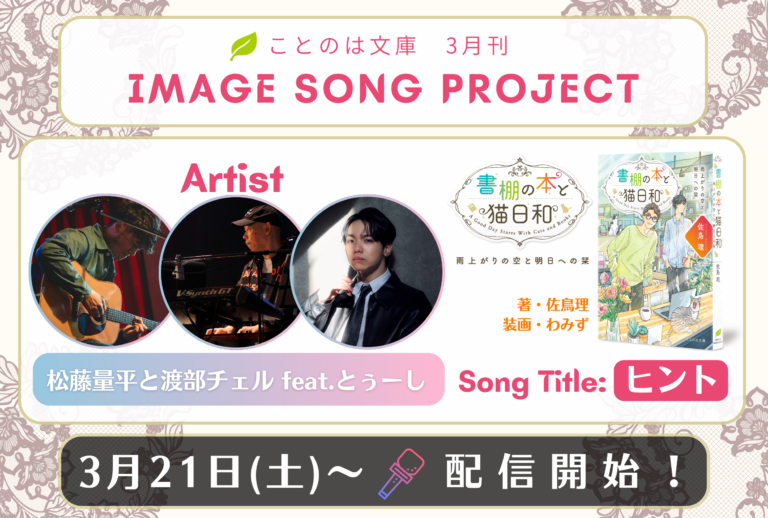 ことのは文庫イメージソングプロジェクト3月楽曲発表! 『書棚の本と猫日和 雨上がりの空と明日への栞』イメージソングを、松藤量平と渡部チェル、とぅーしが担当!