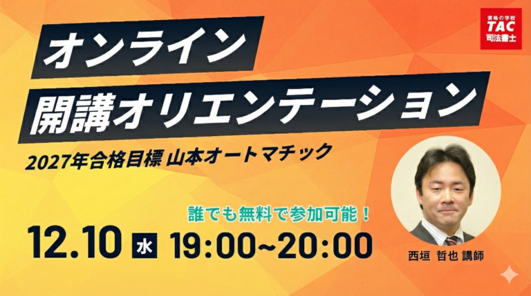 【TAC司法書士】どなたでもお気軽にご参加ください!12/10(水)開講オリエンテーションのご案内