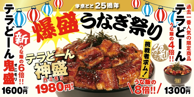 【名代 宇奈とと】鰻の量が最大8倍!?25周年記念「爆盛うなぎ祭り」3/19開幕。伝説の『テラどーん』が神盛り進化で復活
