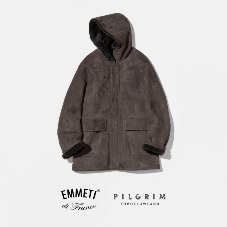 株式会社 トゥモローランド〈EMMETI(エンメティ)〉と〈TOMORROWLAND PILGRIM〉が再び協業。上質ムートンコートとラムスウェードのダウンベストを、今季の別注モデルとして先行公開します。 〈EMMETI〉別注コレクションがPILGRIMに登場
