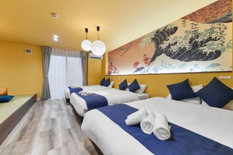 「the hotel OSAKA bay」は、日本文化をテーマにしたユニークなデザインが特徴のコンセプト型民泊です。