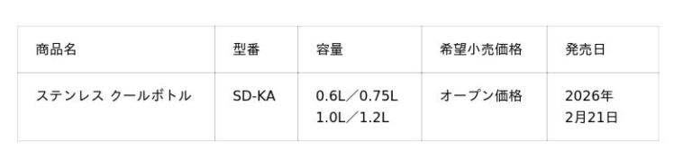 象印マホービン株式会社象印マホービン株式会社では、大好評の「シームレスせん」シリーズより、開閉が簡単で素早く水分補給ができる新構造「スマートキャップ」搭載のステンレス クールボトル(SD-KA型)を2026年2月21日より発売します。 調査※1※2によると大人の運動は、子どものように「アスリート」意識の高い競技としての運動よりも「健康維持」や「趣味」を目的としたものが中心であることが分かりました。そこで、大人の日常的な運動シーンに徹底的に寄り添えるよう、運動中でも素早く水分補給ができる新構造…