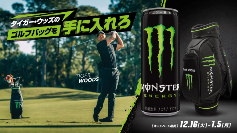 国内No.1エナジードリンク(※)の「モンスターエナジー」は、世界的プロゴルファーで、2016年から「モンスター アスリート」であるタイガー・ウッズ選手のゴルフバッグが当たるキャンペーンを、2025年12月16日(火)から2026年1月5日(月)までの期間、ローソン限定で開催いたします。