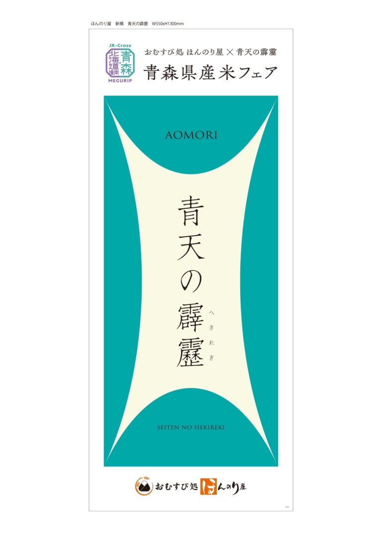 JR-Cross 株式会社JR東日本クロスステーション フーズカンパニー(所在地:東京都渋谷区、カンパニー長:中俣 博文 )が運営する「おむすび処 ほんのり屋」は、エキナカ地域フェア「青森・北海道MEGURIP」の一環として、新橋店限定で期間中に販売するすべてのおむすびに青森県産ブランド米「青天の霹靂」を使用します。