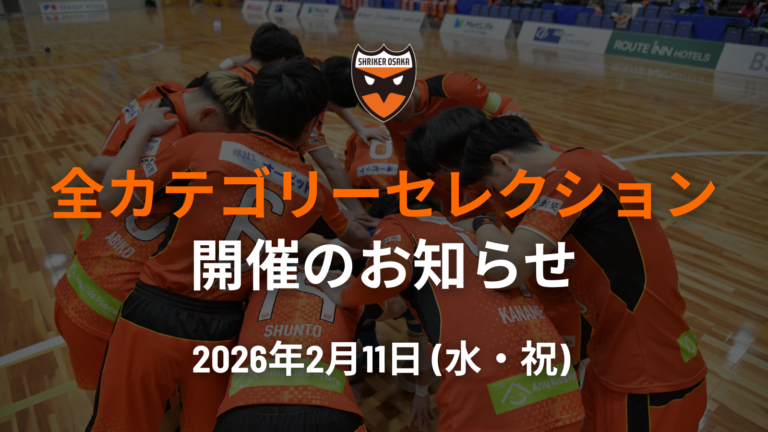 【シュライカー大阪】2月11日(水・祝)全カテゴリーセレクション開催のお知らせ