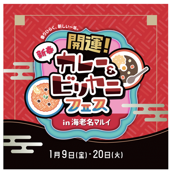 株式会社丸井グループ2026年の新春は“カレー&ビリヤニ”で盛大に開運スタート! 海老名マルイ(株式会社丸井、本社:東京都中野区、代表取締役社長:青野 真博)1Fにて、「ポケットカレー」プロデュースのカレーイベント『開運!新春カレー&ビリヤニフェス in 海老名マルイ』を開催いたします。 ■ 『開運!新春カレー&ビリヤニフェス in 海老名マルイ』について