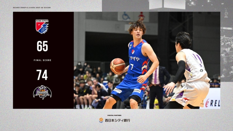ライジングゼファーフクオカ株式会社2026年1月3日(土)に開催した、りそなグループ B.LEAGUE 2025-26 シーズン【ライジングゼファーフクオカ vs.山形ワイヴァンズ】戦は、“福岡 65-74 山形”で福岡の敗戦となりました。 【試合結果】