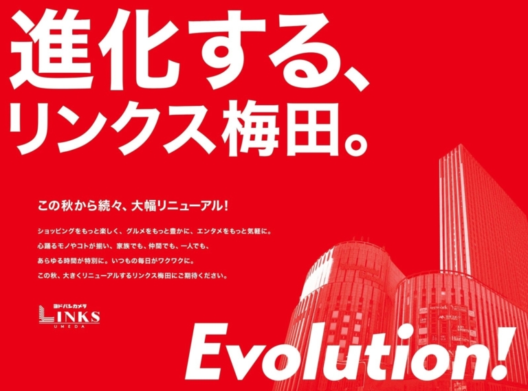 株式会社ヨドバシ建物2019年11月に開業し、6年目を迎える大阪・梅田のヨドバシカメラと一体となった複合商業施設「LINKS UMEDA(リンクス梅田)」は、この秋より26店舗、約1万平方メートル の大規模リニューアルを順次開始します。ファッション、雑貨、サービス、グルメ各カテゴリーにおいて、「Evolution!」をコンセプトに、お客様のライフスタイルをさらに豊かにする商業施設へと進化してまいります。 リニューアルコンセプト「Evolution!」LINKS UMEDAは、2019年11月のオ…