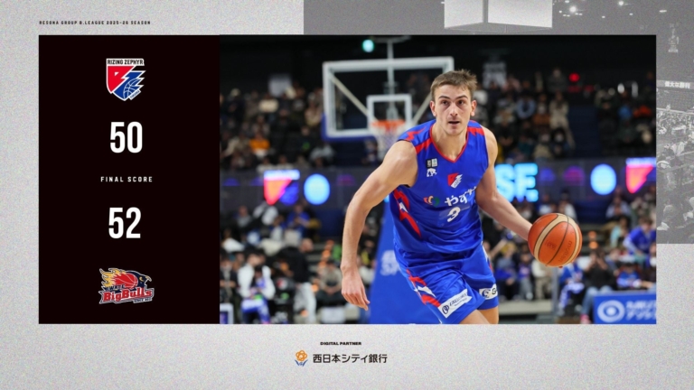 ライジングゼファーフクオカ株式会社2026年2月8日(日)に開催した、りそなグループ B.LEAGUE 2025-26 シーズン【ライジングゼファーフクオカ vs.岩手ビッグブルズ】戦は、“福岡 50-52 岩手”で福岡の敗戦となりました。 【試合結果】