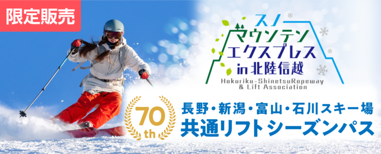 一般社団法人 長野県観光機構 北陸信越山岳観光索道協会および(一社)長野県観光機構は、長野県・新潟県・富山県・石川県の4県にある対象スキー場を共通で利用できる「70th 長野・新潟・富山・石川スキー場共通リフトシーズンパス」専用サイトを開設し、2026-27シーズンに向けて販売を開始いたします。