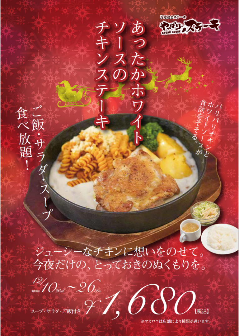 【やっぱりステーキ】冬限定メニュー「あったかホワイトソースのチキンステーキ」新登場!