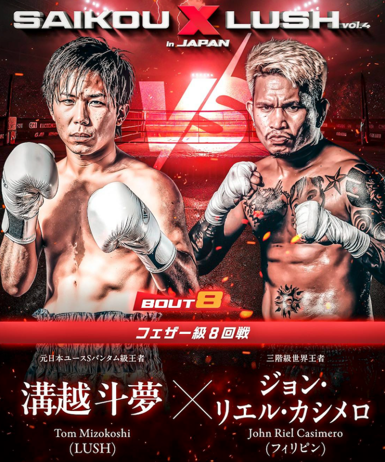株式会社LUSHフェザー級8回戦に出場。対戦相手は元日本ユース・スーパーバンタム級王者の溝越 斗夢(LUSH) ボクシングと音楽とグルメが融合した新時代のスポーツエンターテインメント「SAIKO × LUSH」は2025年12月27日(土)に愛知国際展示場(展示ホールA)にて「SAIKO × LUSH vol.4 in JAPAN」を開催いたします。