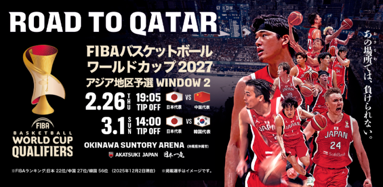 沖縄アリーナ株式会社沖縄アリーナ株式会社(以下「沖縄アリーナ社」)は、公益財団法人日本バスケットボール協会(以下「JBA」)の協力のもと、2026年2月に開催される「FIBAバスケットボールワールドカップ2027 アジア地区予選(Window2)」に向けた男子日本代表チーム直前合宿が、沖縄サントリーアリーナにて実施されることをお知らせいたします。 本取り組みの位置づけ