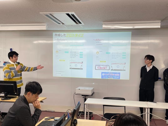 この度は、paiza株式会社と産学連携の形で特別授業を実施していただき、誠にありがとうございました。日頃より「paizaラーニング」や「プログラミングスキルチェック」など、様々な形で大変お世話になっております。今回の特別授業では、学生たちがデザイン思考に基づく課題解決のプロセスを学び、現実の課題に対して主体的に考え、解決策を提案する力を養いました。最終プレゼンテーションでは、各チームが創意工夫に富んだ提案を行い、学生たちの成長とともに、大きな可能性を感じることができました。今後もこのような連携を通じて、社会に貢献できるIT技術者の育成に努めてまいります。