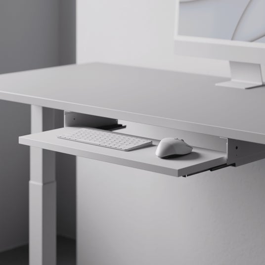 その名の通り「キーボード」を載せるのはもちろん、タブレットやカラーパレット、音楽機材など多種多様な入力機器やデバイスをデスクのすぐ下に格納し、レールで簡単に取り出せるようにするモジュールです。