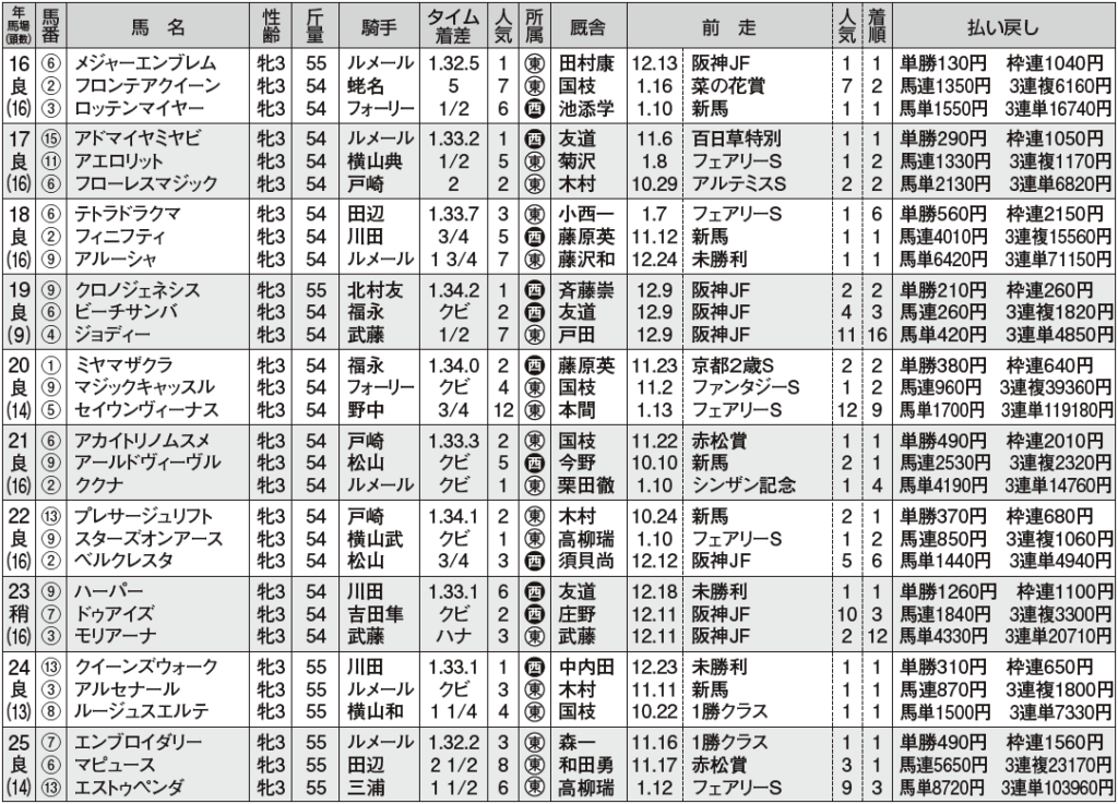 牝馬クラシックに直結する重賞で、本番まで程よい間隔が空くことから、近年では桜花賞トライアルよりも粒揃いのメンバーになっている。