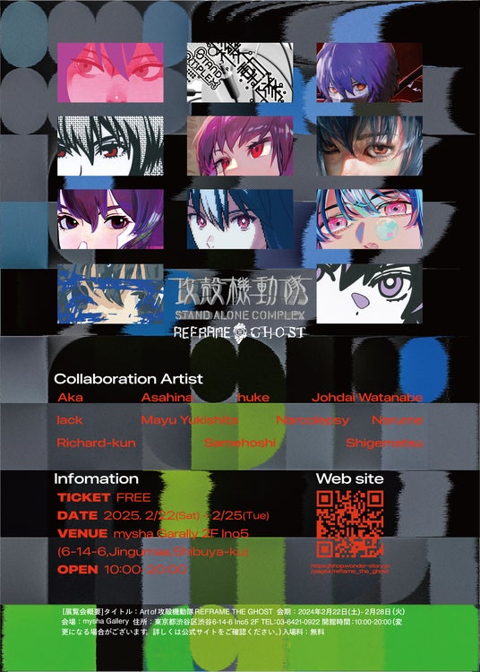 株式会社灯白社(本社:東京都渋谷区、代表取締役:小木曽一輝)は、TVアニメ『攻殻機動隊 S.A.C.』と国内外で活躍する著名クリエイター(現代アーティスト・イラストレーター)陣がコラボレーションしたイベント「攻殻機動隊 S.A.C. | REFRAME THE GHOST」を開催します。