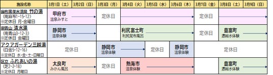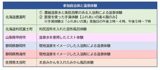 参加自治体と温泉体験