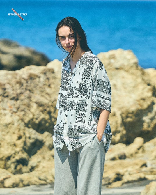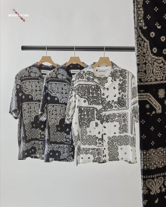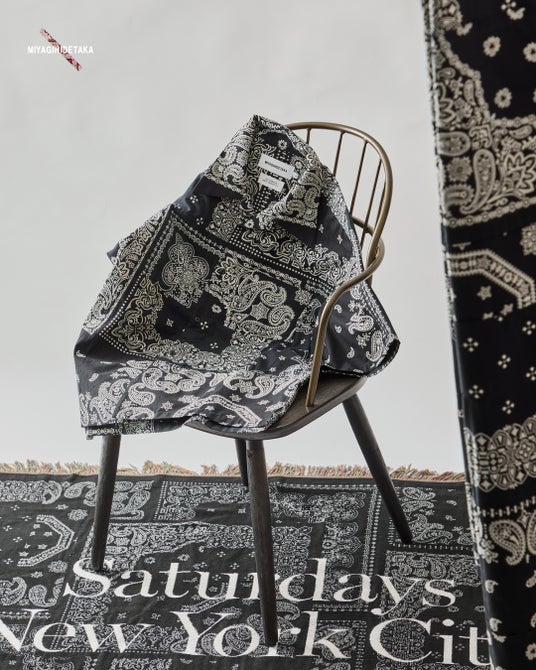 さらに、本コラボレーションのローンチを記念し、代官山・神戸・大阪の3店舗限定で、今回デジタル化されたテキスタイルの元となった、宮城氏が実際に制作したバンダナ生地をそのまま使用した、特別仕様のパッチワークオープンカラーシャツを数量限定で展開いたします。「Saturdays NYC」と「MIYAGIHIDETAKA」の世界観が融合した、唯一無二のコレクションをぜひ店頭でご覧ください。