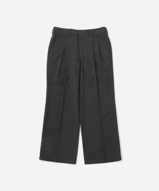 春夏に最適な、清涼感のある生地感のストライプスラックス。