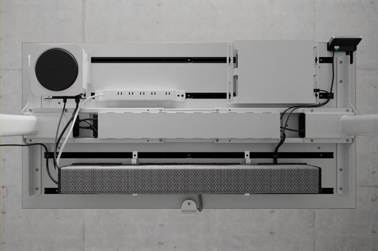 Bracket Longを用いてフローティングスタイルで設置した図。天板との隙間にラップトップを格納できる
