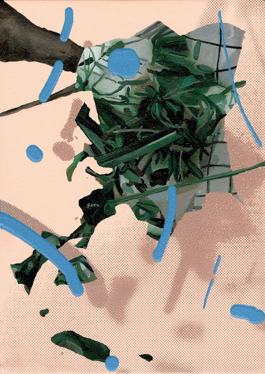 SNSに投稿した画像をもとに、日常の風景や記憶を絵画として表現している山崎さんの作品。