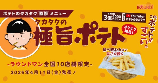 SNS総フォロワー100万超えクリエイター「ポテトのタカタク」初の冷凍食品「タカタクのレンチンポテト」ラウンドワン全国10店舗で4月11日より数量限定販売