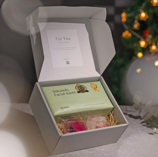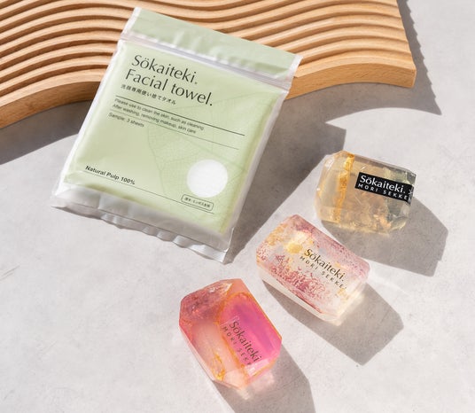 石鹸を1個以上ご購入の方に「Sokaitekiフェイシャルタオル3枚入りサンプル」をノベルティプレゼント!※なくなり次第、終了となります。