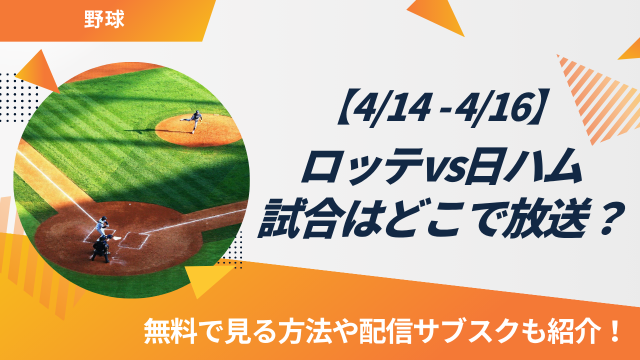 本記事では、4月14日(火)から4月16日(木)に行われるロッテvs日ハムの放送情報や、試合を無料で観る方法をご紹介します。