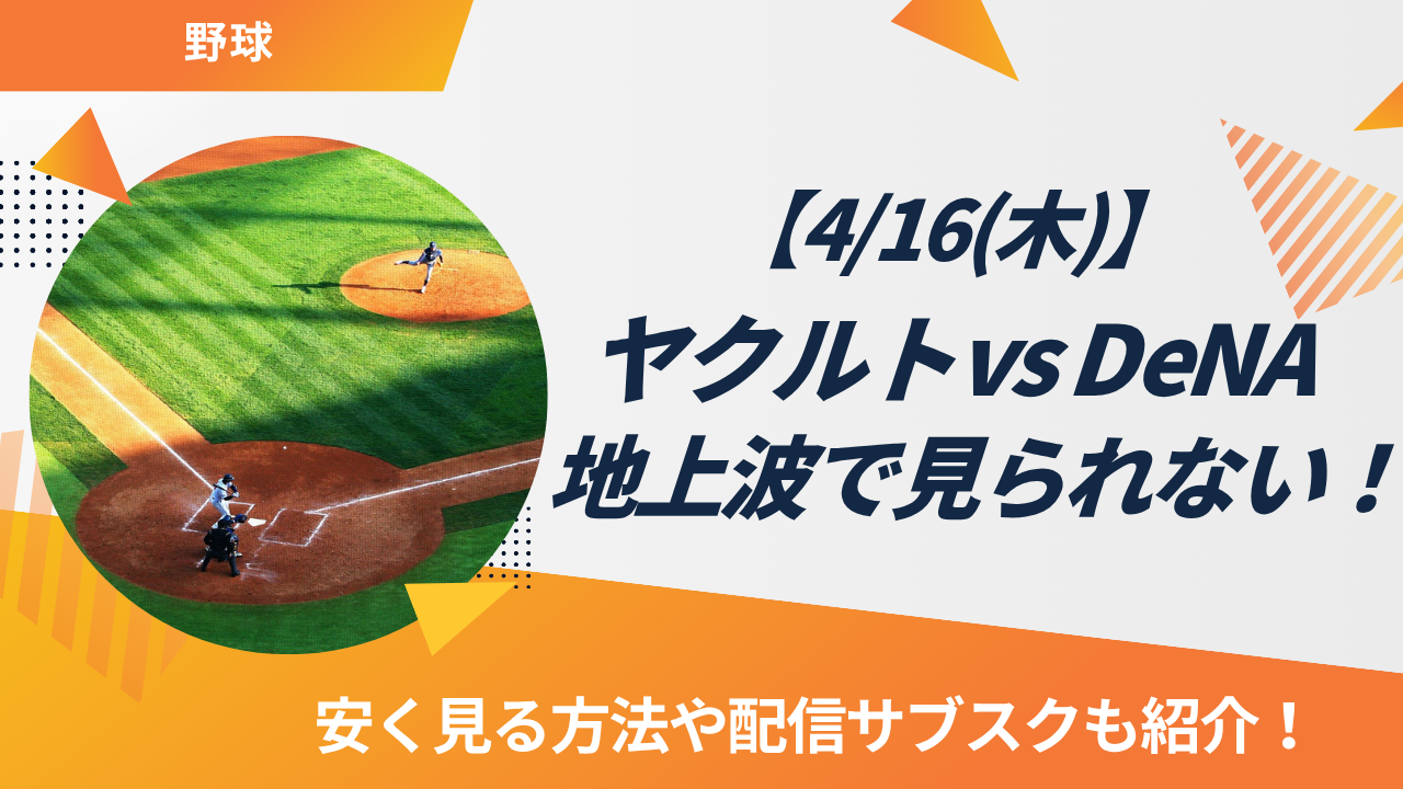 【4/16(木)】ヤクルトvsDeNAは地上波放送なし!安く見る方法や配信サブスクも紹介!