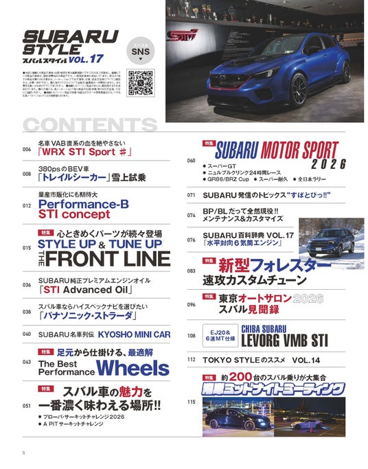 2026年のSUBARUカスタム&チューニングシーン、新型車情報、モータースポーツ情報、そしてユーザースタイルの情報満載の最新号「スバルスタイルVOL.17」。