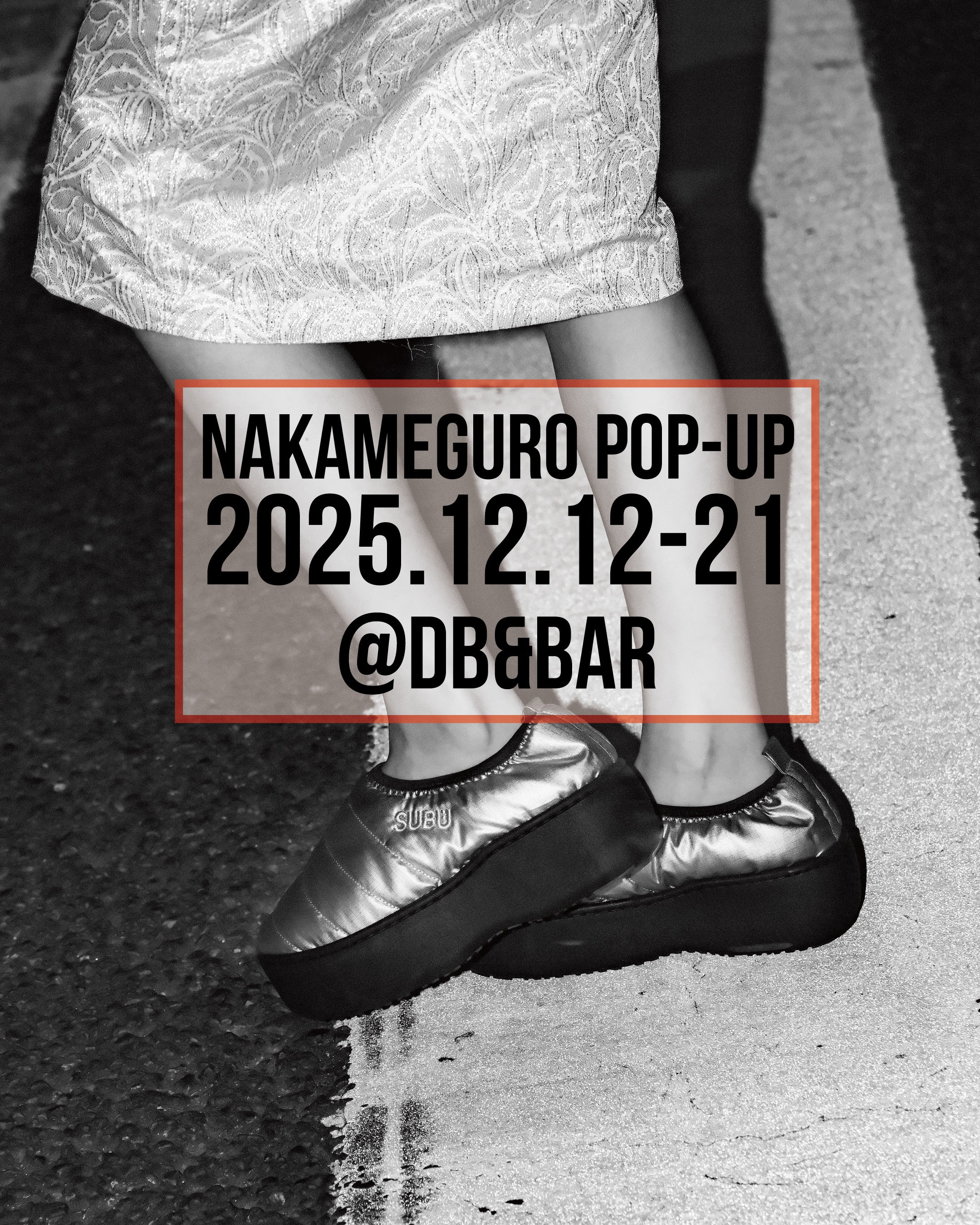 冬のサンダルブランド SUBU(ス は、2025年12月12日(金)~12月21日(日)の期間、中目黒のセレクトショップ DB&BAR(ディービーアンドバー) にてPOPUP STOREを開催します。