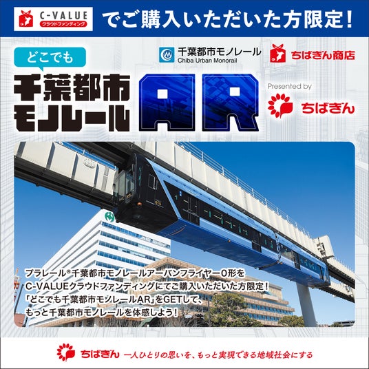この特典は、AR(拡張現実)技術を活用し、支援者がスマートフォンを使って千葉都市モノレールを好きな場所に出現させ、360度の視点で鑑賞できる特別なデジタル体験を提供します。