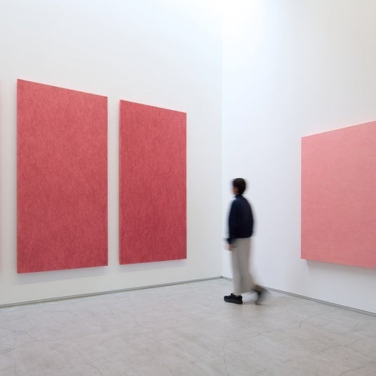 須釜衣緒里は、市場に出回っている衣服や生活用品などを「現代という時代の空気を吸ってきた同居人」的なものと捉えて画面内に閉じ込め、作品化しています。画面を塗りつぶしたり消したりする行為は、日常の中で書類に訂正線を引いたり捺印したりする行為と類似するものだと捉えた時、絵画におけるマチエールとそこに残る痕跡は、作家自身の生の積み重ね、これまでの歩みと「今」を表すものでもあるでしょう。須釜自身と共存してきたもので作品が形作られるゆえ、そこにはもしかすると言いたくとも言えなかったことや、かき消された声のようなものが詰まっているのかもしれません。ハイヒールやパンプスから聞こえるメッセージと、塗り重ねられた画面との対話から、どのようなメッセージを受け取るのかは鑑賞者に委ねられています。