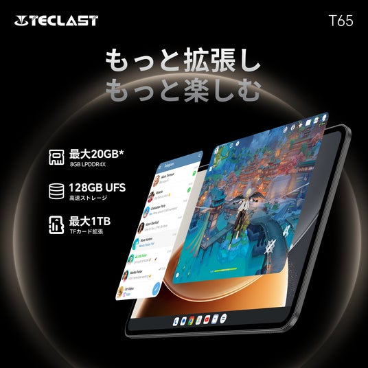Teclast 13.4インチ大画面タブレット「T65」登場!4日間限定¥20,900円の初回キャンペーン開催中!120Hzディスプレイ|20+128GB|8000mAh大容量|GPS対応