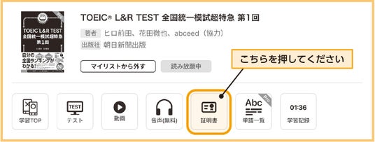 「全国統一模試 第1回」の受験結果は、証明書として発行されます。受験後、「証明書」ボタンが表示されます。