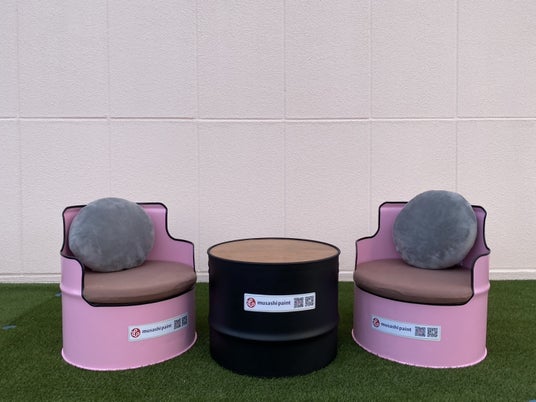 ドラム缶リメイクテーブル&チェアー(武蔵塗料株式会社提供)