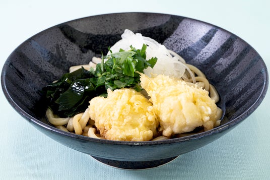 淡路島の夏の名物「鱧」を贅沢に天ぷらにした、涼やかな一品。ふっくらとした身と上品な旨みが特徴の淡路島産鱧を、香ばしく揚げた天ぷらで提供。冷たく締めたうどんに、わかめやオニオンスライスを添えた清涼感たっぷりの仕上がりは、暑い夏にぴったり! 京都や大阪の「祇園祭」「天神祭」で珍重される「べっぴん鱧」の美味しさを、気軽に楽しめます。