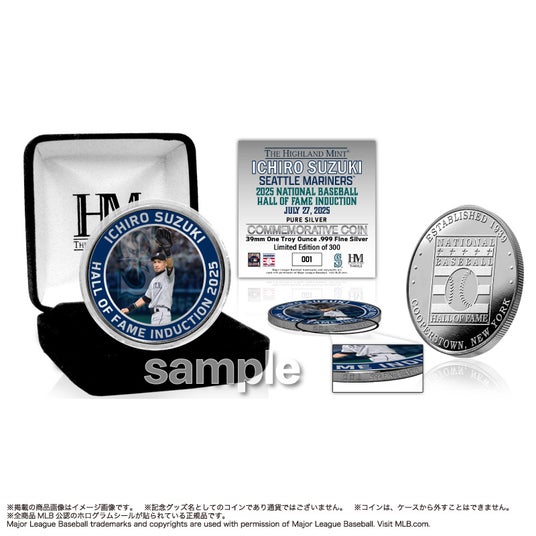 - コイン:φ3.9cm、純銀31.1g(イチロー勇姿+殿堂入りロゴ)