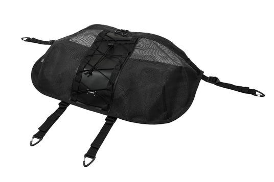 - パックラフトのバウ(船首)専用メッシュバッグ。あえて防水仕様を避け、メッシュ生地で水抜けを確保。