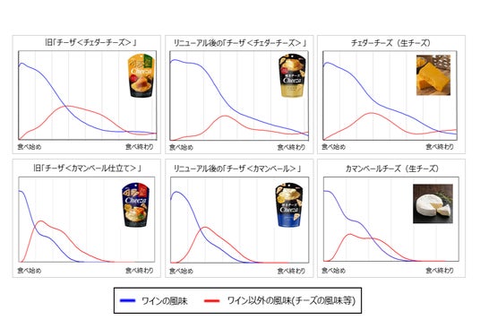 - リニューアル後の「チーザ」は、生チーズと近い風味の変化を持ち、ワインとの相性が抜群(グラフによる検証済み)。
