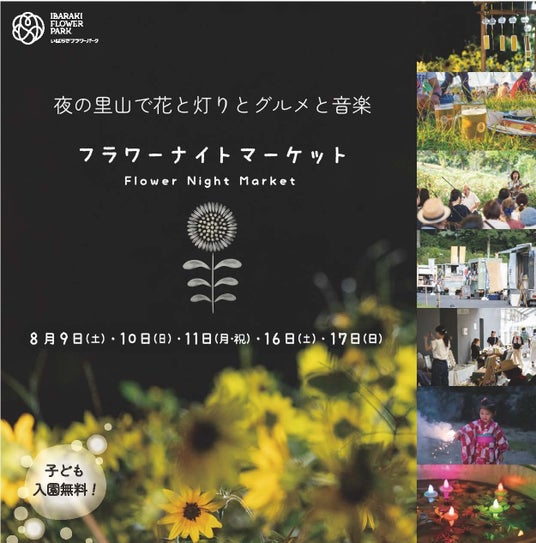 いばらきフラワーパークで、夜の里山を楽しむ大人気イベント「フラワーナイトマーケット」が、2025年8月9日(土)~11日(月・祝)、16日(土)~17日(日)の計5日間限定で開催されます。